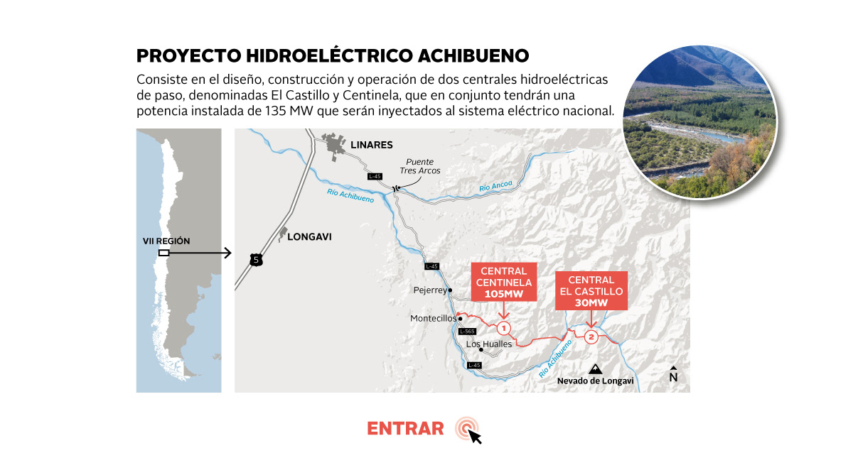 Consiste en el diseño, construcción y operación de dos centrales hidroeléctricas de paso, denominadas El Castillo y Centinela, que en conjunto tendrán una potencia instalada de 135 MW que serán inyectados al sistema eléctrico nacional.